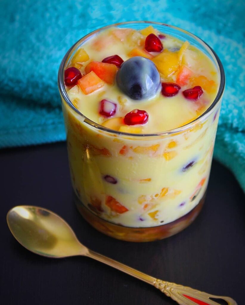 1) कटे हुए ताजे फल (सेब, केला, अनार, अंगूर आदि) – 2 कप